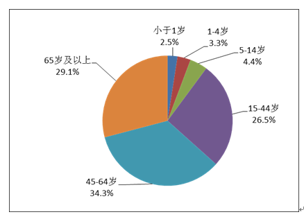2019年藥品不良反應(yīng)/事件報告中,男女患者比為0.86:1,女性略多于男性。14歲以下兒童患者占10.2%;65歲及以上老年患者占29.1%(圖5)。